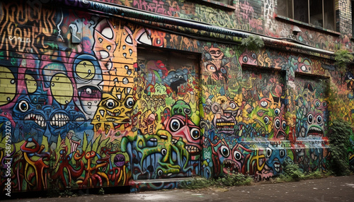 Fototapeta premium Colorful graffiti takes over old city street generated by AI