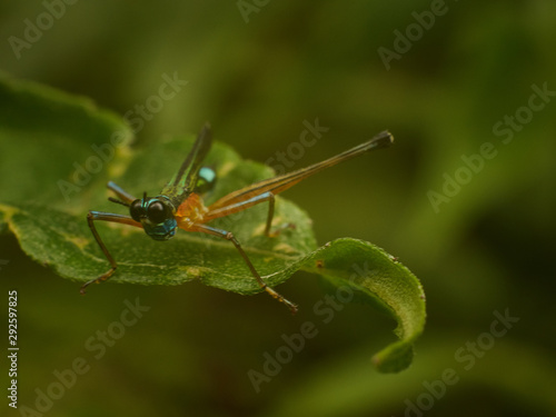 © UKHUKANYA, Fototapeta premium Colorful Grasshoppers on Green Leafs
