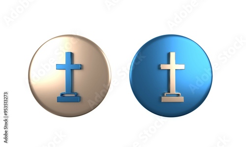 © Kostiantyn, Fototapeta premium Colorful Grave with cross icon isolated on white background. Circle button. 3D render illustration