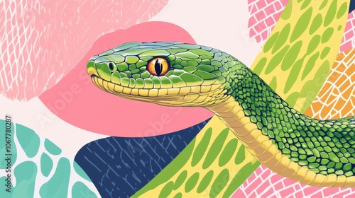 Fototapeta premium Colorful green snake illustration on vibrant abstract background