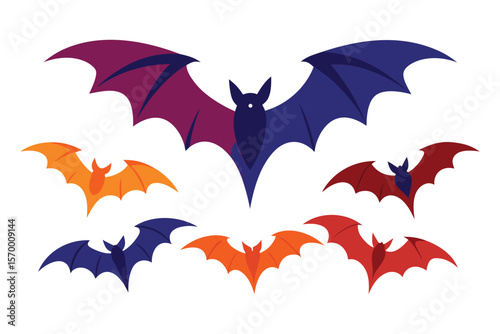 © RMdesigner71, Naklejka premium Colorful Halloween bats flying in a pattern silhouette