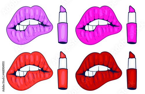 Obraz premium Colorful Hand Drawn Lips and Lipstick With different color