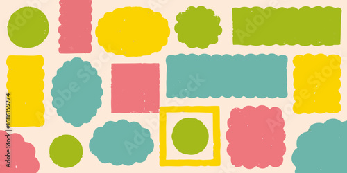© Lalin, Fototapeta premium Colorful hand drawn shapes and frames in pastel colors on a light background