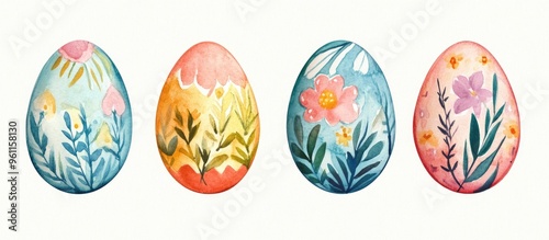 Fototapeta premium Colorful Hand-Painted Easter Eggs with Floral Designs for Spring Celebrations