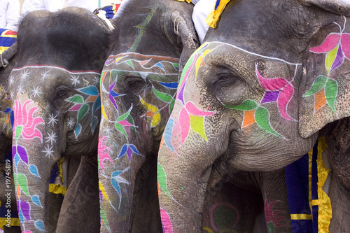 © SIRIUS*, Obraz premium Colorful hand painted elephants, Holi festival, Jaipur, Rajasthan, India