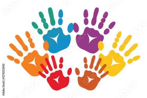 Obraz premium Colorful Handprints Circle on White, Vivid Diverse Palm Prints, Community Symbol