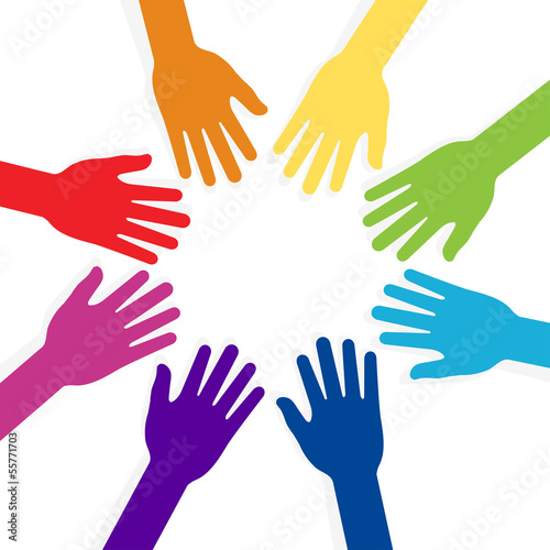 © bymandesigns, Obraz premium colorful hands forming shape teamwork