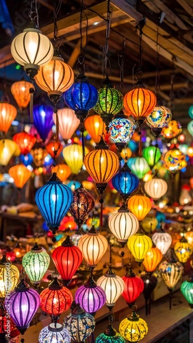 © Sulam, Naklejka premium Colorful hanging lamps in a market
