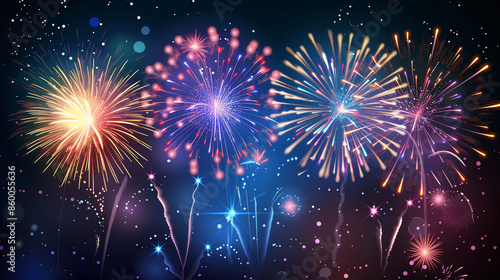© AiDesign, Fototapeta premium Colorful happy new year's eve fireworks explosion on dark night background