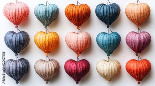 Fototapeta premium Colorful Heart-Shaped Decorations in a Grid Pattern