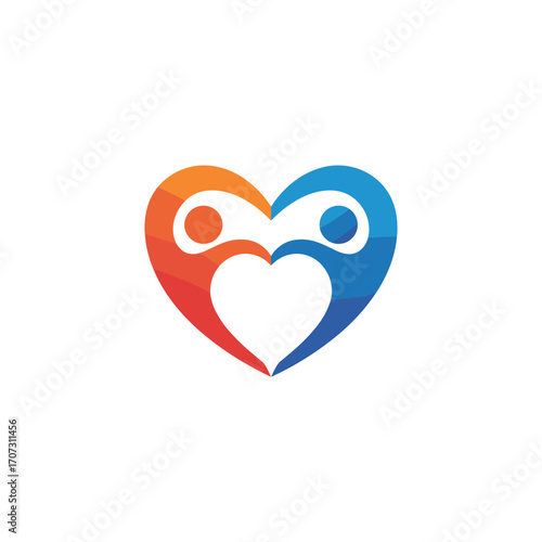 Fototapeta premium Colorful heart-shaped logo with two human figures in orange and blue – flat...