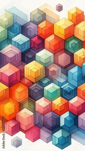 Obraz premium Colorful Hexagonal Geometric Pattern with Watercolor Texture