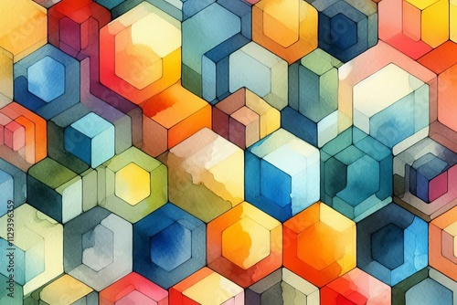 Obraz premium Colorful Hexagonal Geometric Pattern with Watercolor Texture