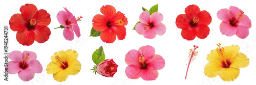 Obraz premium Colorful Hibiscus Flowers Collection Isolated on White Background