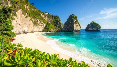 © dian, Fototapeta premium Colorful high resolution summer panorama of penida beach, bali