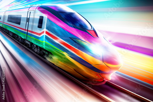 © Kitsada, Fototapeta premium Colorful High speed train with motion blur effect, Generative AI