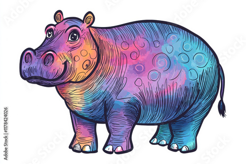 Fototapeta premium Colorful hippo illustration with vibrant patterns and playful expression