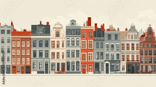 © Yothin, Fototapeta premium Colorful Historic Building Row Seamless Pattern Illustration