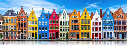 Fototapeta premium Colorful historic buildings along a canal in Bruges