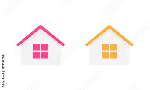 Obraz premium Colorful Home UI Icon Set with Window – Flat Dashboard House PNG Collection...