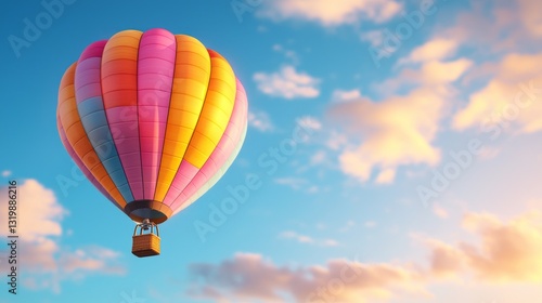 Naklejka premium Colorful Hot Air Balloon against a Soft Blue Sky with Clouds