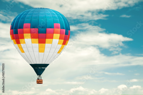 Fototapeta premium Colorful hot-air balloon against blue cloudy sky
