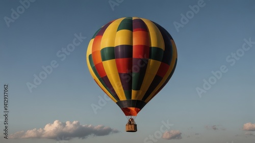 Fototapeta premium Colorful hot air balloon flight, clear sky, clouds, travel