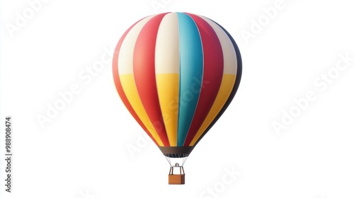 © Napasnan, Fototapeta premium Colorful hot air balloon floating gently, isolated on white background. Balloon with striped design.