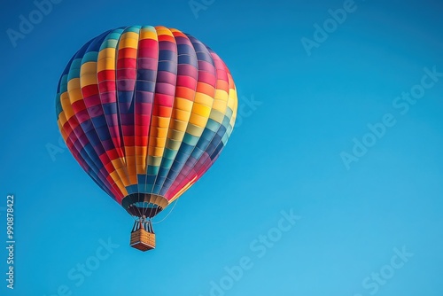 © Iurii, Obraz premium Colorful hot air balloon floating in the clear blue sky during a sunny day