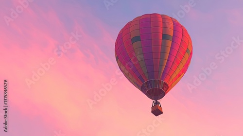 Fototapeta premium Colorful Hot Air Balloon Floating in the Serene Sky During a Breathtaking Sunset with Beautiful Pink and Orange Hues Above the Landscape