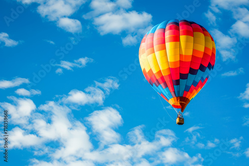 © mila103, Naklejka premium colorful hot air balloon floating in the sky, symbolizing adventure and freedom.