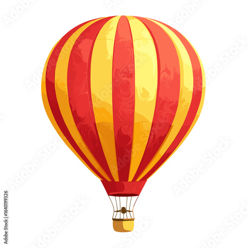 © Stitch, Fototapeta premium Colorful hot air balloon floats in the sky during a clear day, showcasing vibrant red and yellow stripes