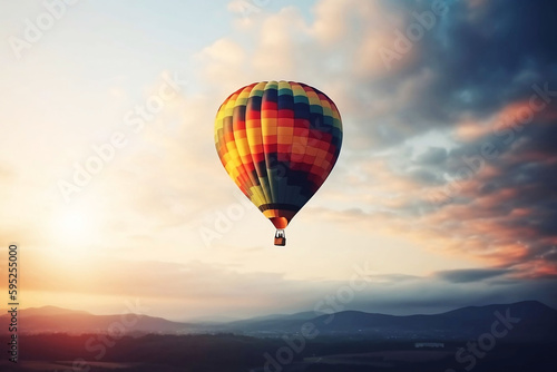 Fototapeta premium Colorful hot air balloon flying in the sky. illustration on blue background...