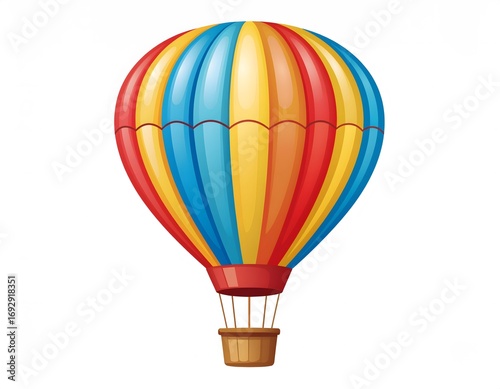 © ZAKHI, Fototapeta premium Colorful hot air balloon illustration with red basket and ropes against a white background.