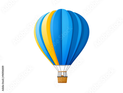 © Bismillah, Naklejka premium Colorful hot air balloon in blue and yellow against black background