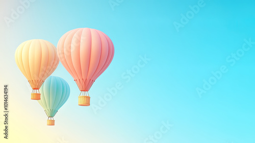 © Erin, Obraz premium colorful hot air balloon in blue sky background, 3d illustration