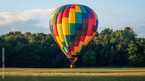 © kenshin, Obraz premium Colorful Hot Air Balloon Landing in Field