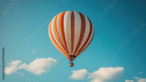 Naklejka premium Colorful hot air balloon soaring high above fluffy clouds in a clear blue sky