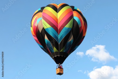 Fototapeta premium Colorful Hot Air Balloon Soaring in a Blue Sky