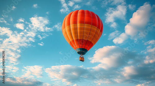 © Your Hand Please, Naklejka premium Colorful hot air balloon soaring in a bright blue sky, symbolizing freedom, adventure, and new perspectives