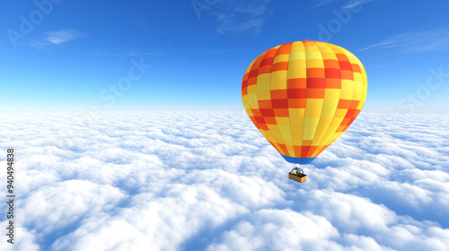 Fototapeta premium Colorful hot air balloon soaring in a bright blue sky, symbolizing freedom,...