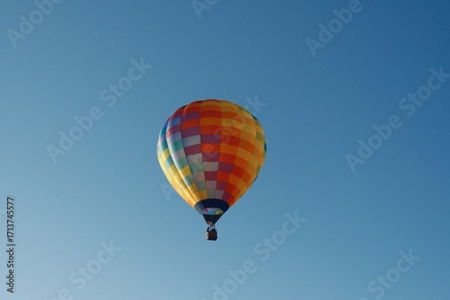 © Cavan, Obraz premium Colorful hot air balloon soaring in a clear blue sky