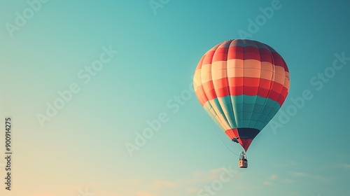 Fototapeta premium Colorful Hot Air Balloon Soaring in a Clear Sky.