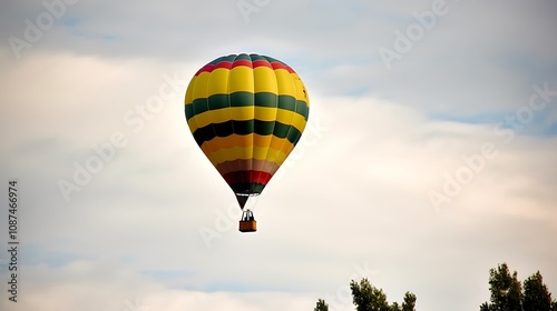© lisa, Naklejka premium Colorful Hot Air Balloon Soaring Through Cloudy Skies