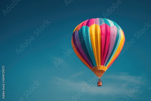 Fototapeta premium Colorful hot air balloon soars against a vibrant blue sky