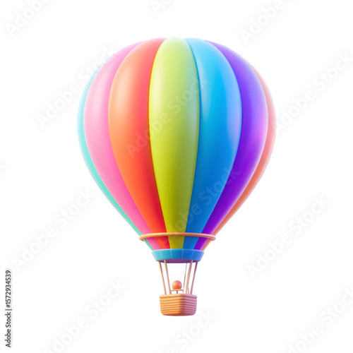© 3D PNG Element, Fototapeta premium Colorful hot air balloon with a basket isolated on transparent background