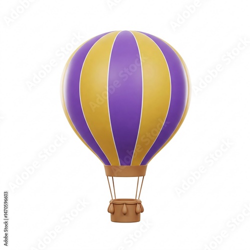 © Viktoriia, Naklejka premium Colorful hot air balloon with basket, isolated on a white