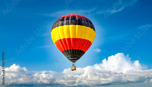 © Fleuronica, Fototapeta premium Colorful hot air balloon with German colors flag floating high in a clear blue sky on a sunny day