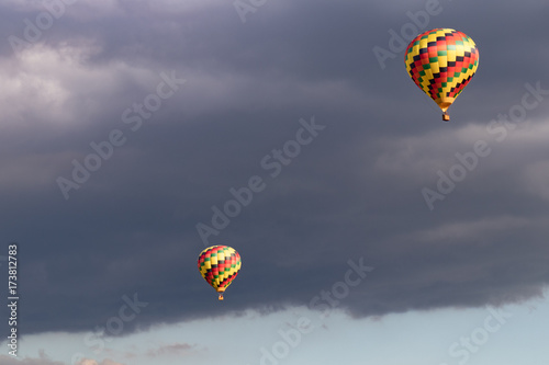 © Martina, Obraz premium Colorful hot air balloon with puffy clouds in background