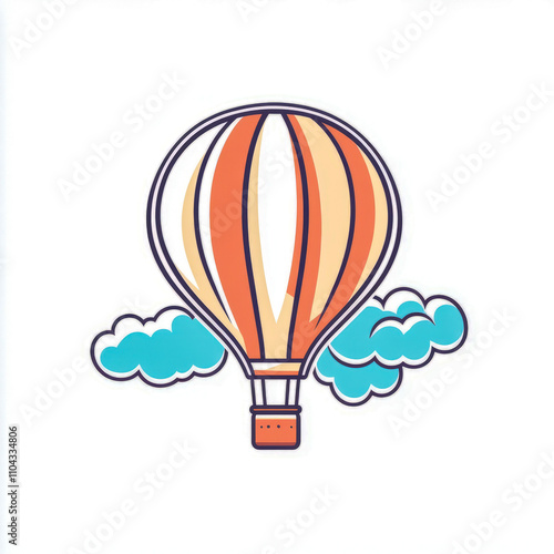 © Atmospheric stock, Obraz premium Colorful hot air balloon with striped patterns and blue clouds in the sky
